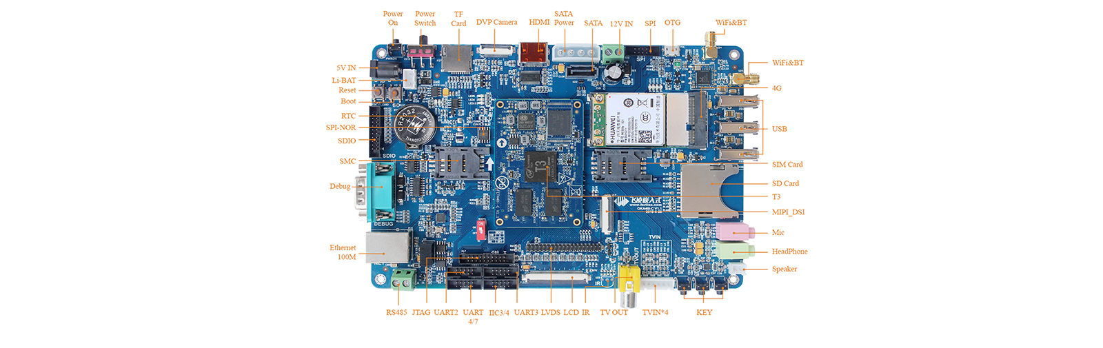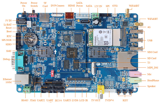 全志 T3 四核处理器,Cortex-A7架构,主频1.2GHz,集成MAli400MP2 GPU,内存1GB DDR3L,存储8GB eMMC,支持绝大部分当前流行的视频及图片格式解码,具有稳定可靠的工业级产品性能、低功耗、以及丰富的用户接口等优势,适用于车载电子、电力行业、医疗电子、工业控制 、物联网 、智能终端等领域。