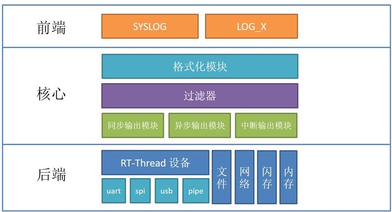 - 日志输出的后端多样化,可支持例如:串口、网络,文件、闪存等后端形式。